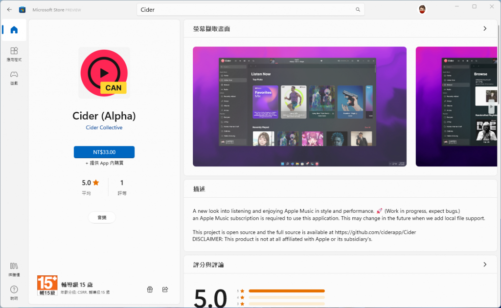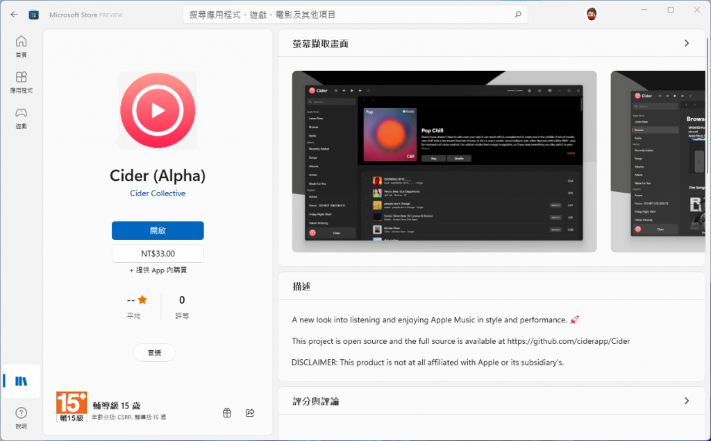 *請注意,購買/贊助和使用 Cider 不代表可以免費使用 Apple Music 服務,需要以每月150新台幣訂閱才能使用 Apple Music 服務。另外,Apple Music 提供新的個人用戶可享受4個月免費試用,期滿如未取消訂閱,收費標準為每月150新台幣。