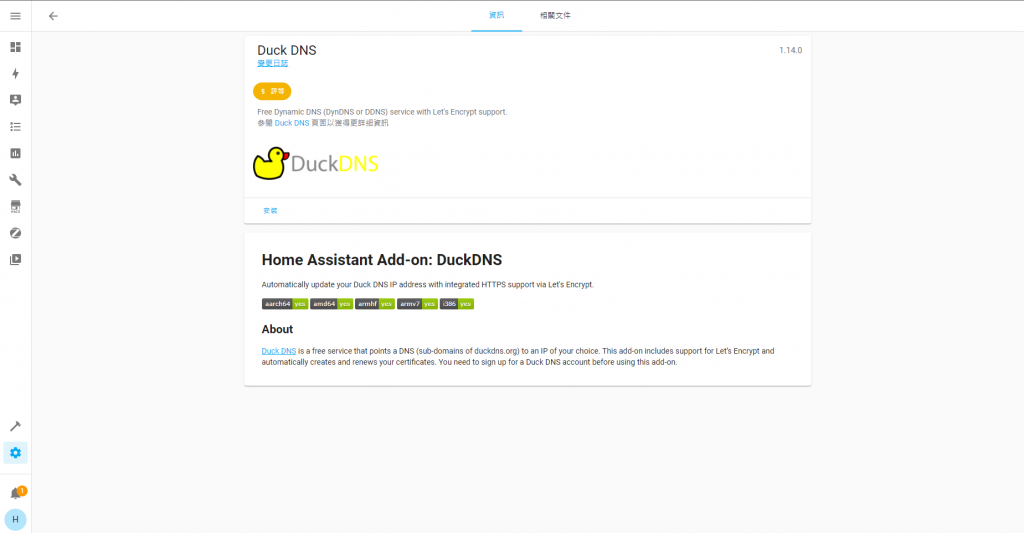 前往設定>附加元件>附加元件商店,找到 Duck DNS 後把它安裝起來。