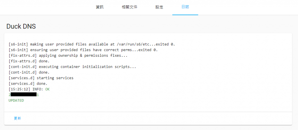 這樣就完成 DuckDNS 的設定了,如果需要外網存取的話,可能要前往路由器設定 Port 轉發。