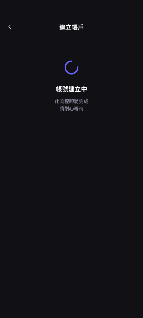 這時候系統會開始建立你的帳戶資料,請稍等片刻。這個過程大約需要幾分鐘。