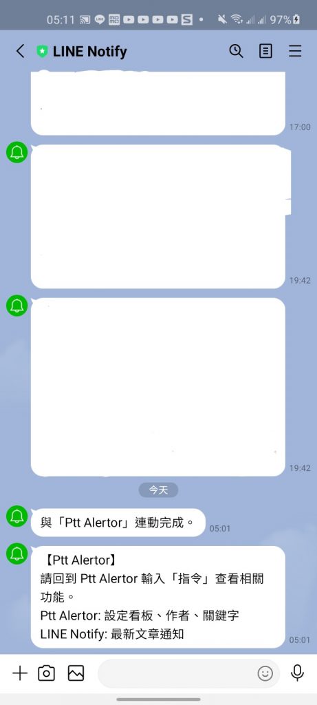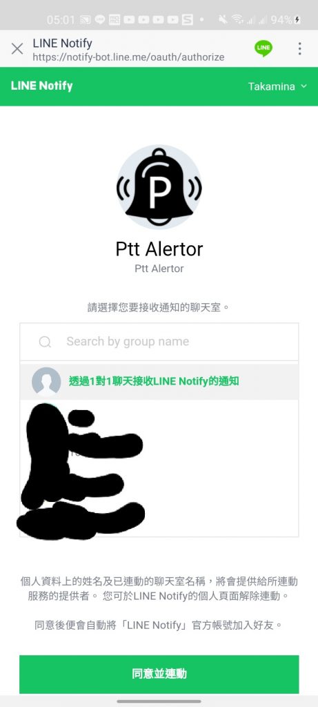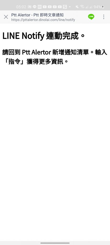 點完之後就會收到「LINE Notify」的訊息