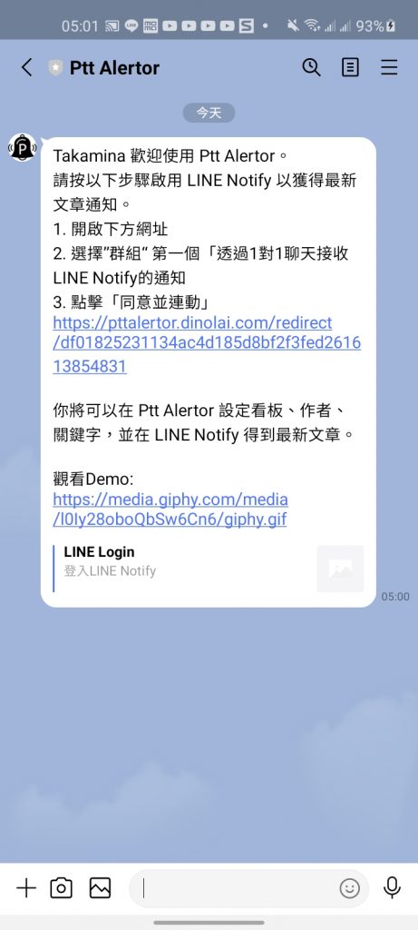 加入後機器人會自動發送訊息點裡面的連結