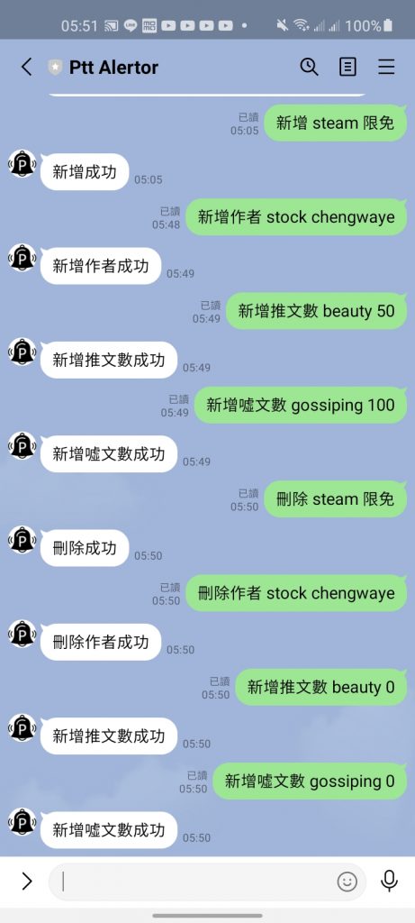 到這裡就可以直接把網頁關掉回到「Ptt Alertor」帳號